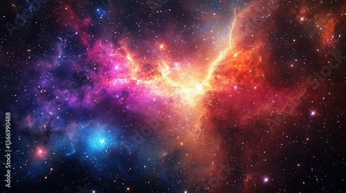 A vibrant cosmic nebula filled with sparkling stars and colors