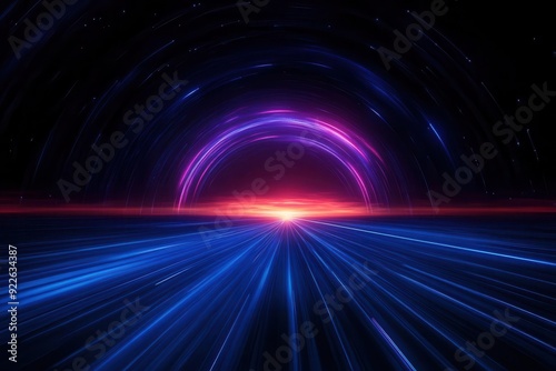 A vibrant cosmic scene showcasing light trails and radiant colors, evoking a sense of movement through space and time.