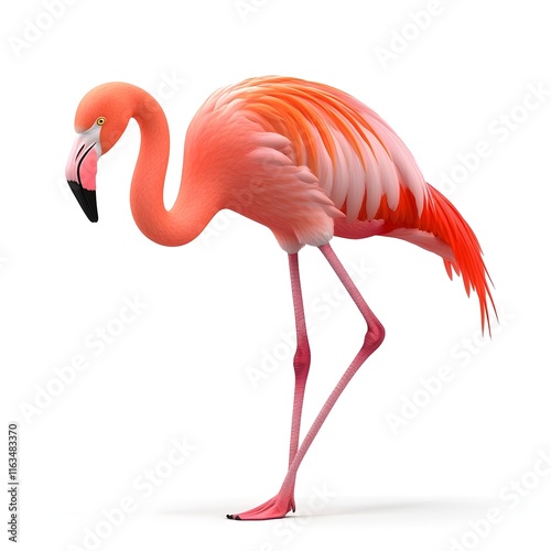 A vibrant, detailed 3D model of a flamingo, presented against a clean white backdrop.