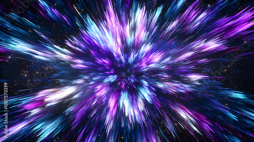 A vibrant digital illustration of a cosmic explosion with bright blue and purple hues emanating from a central point. Ideal for dynamic and futuristic tech themes.