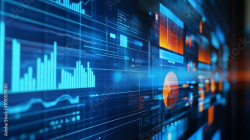 A vibrant digital interface showcasing various data visualizations, including graphs and charts, reflecting technological advancement and data analysis.