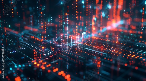 A vibrant digital landscape filled with glowing data streams and interconnected nodes.