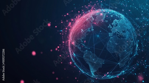 A vibrant, digital representation of Earth showcasing glowing connections and particles, symbolizing global connectivity and technology.
