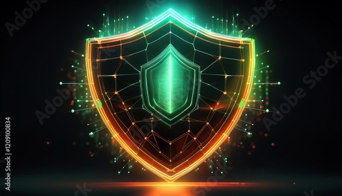 A vibrant digital shield icon illuminated with glowing colors, symbolizing protection and security in a modern, tech-inspired design.