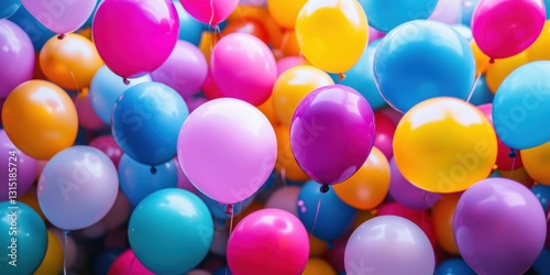 A vibrant display of colorful balloons in various shapes and sizes, floating against an uncluttered background Generative AI