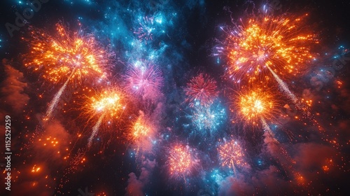 A vibrant display of colorful fireworks illuminating the night sky.