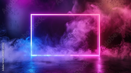 A vibrant display of colorful smoke surrounding a glowing frame, set against a dark background, ideal for creative concepts.