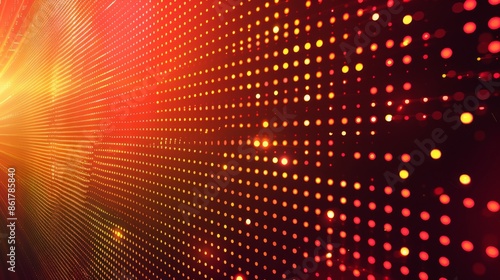 A vibrant display of dynamic red and yellow light dots creating an abstract digital pattern in motion