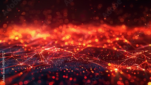 A vibrant display of red and orange glowing connections sprawling across a shadowy backdrop resembling digital fire with a designated space for text along the bottom edge