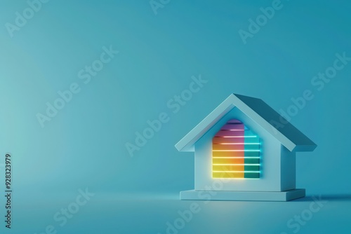 A vibrant energy efficiency rating chart glows through a mini house model, symbolizing sustainability and eco-friendly living.