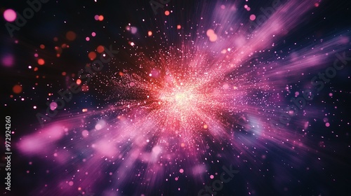 A vibrant explosion of colorful light particles fills the dark space, showcasing the beauty of abstract cosmic phenomena