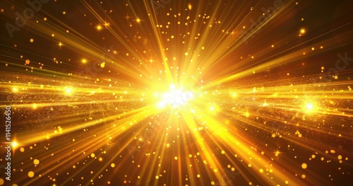 A vibrant explosion of golden light and particles, creating a dynamic, energetic atmosphere.