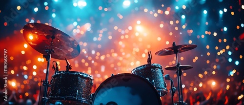 A vibrant festival background with live instruments, dynamic stage lighting, and a cheering crowd, immersive and energetic, cinematic detail