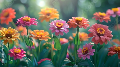 A vibrant field of colorful flowers in bloom, creating a serene and cheerful atmosphere.