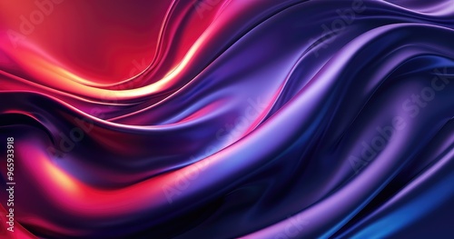 A vibrant, flowing abstract design featuring smooth gradients of red, purple, and blue, evoking a sense of motion and depth.