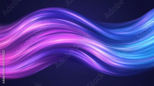 A vibrant, flowing graphic with waves of purple and blue light against a dark background, creating a dynamic and abstract visual effect.