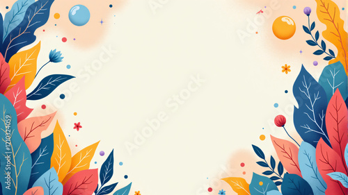 A vibrant frame featuring colorful leaves and bubbles, perfect for creative projects and invitations.