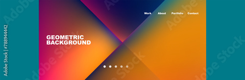 A vibrant geometric pattern with tints of magenta and amber, set against an electric blue border. The design features triangles and space elements, creating a colorful and dynamic background