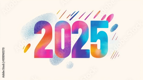 A vibrant graphic design featuring the year "2025" in colorful, modern typography against a light background.