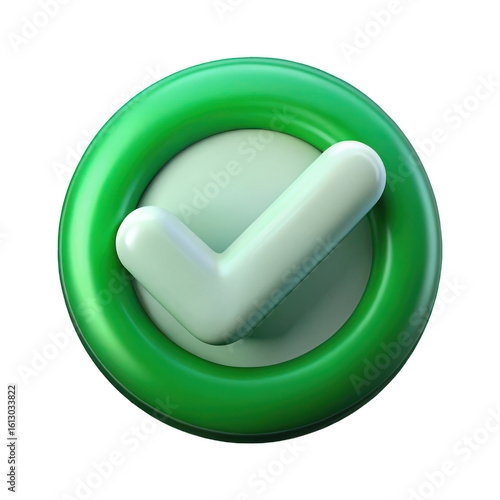A vibrant green circle with a glossy finish encloses a stylized white checkmark symbol indicating success and confirmation isolated on transparent background