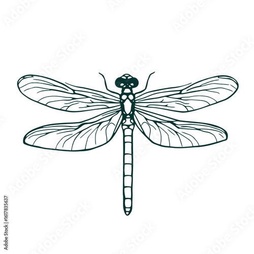 A vibrant green dragonfly vector illustration, an isolated insect with delicate wings, captures the fragility and beauty of nature in a stunning macro close-up