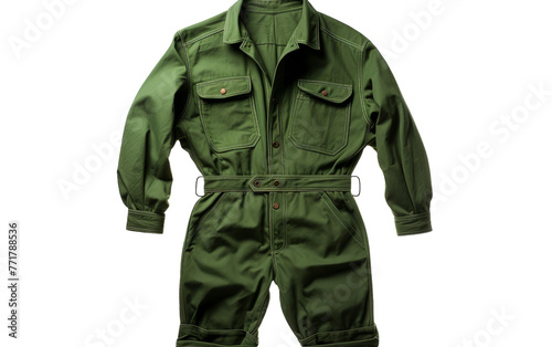 A vibrant green jumpsuit is displayed elegantly against a pristine white background