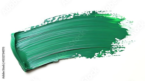A vibrant green oil paint brush stroke on a white background, featuring a clipping path and ample white space on the left for versatile design use.