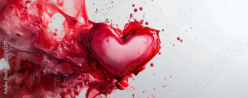 A vibrant heart shape surrounded by splashes of red liquid, conveying love and emotion.