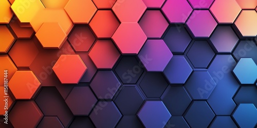 A vibrant hexagonal pattern with a gradient of colors from orange to blue.