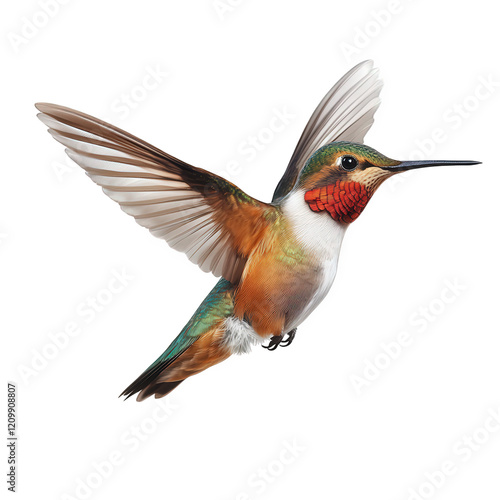 a vibrant hummingbird in mid-flight. showcasing its iridescent feathers and unique coloration. emphasizing the beauty of wildlife and the intricacies of nature