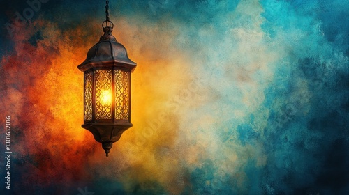 A Vibrant Lantern Illuminating a Beautifully Textured Background with Colorful Hues and Mystical Ambiance