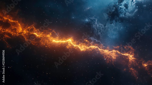 A vibrant lightning bolt stretching horizontally across a dark sky, symbolizing power, energy, and dramatic natural phenomena