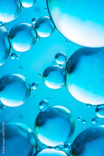 A vibrant macrround bubbles of carbon dioxide floating in the translucent blue waters
