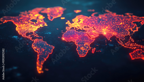 A vibrant map of the world illuminated with glowing orange and yellow lights.