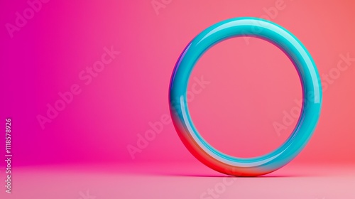 A vibrant, modern circular object in blue against a pink gradient background, showcasing a sleek, minimalist design and eye-catching colors.