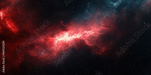 A vibrant nebula illuminated in stunning shades of red and blue, set against a backdrop of deep cosmic space.