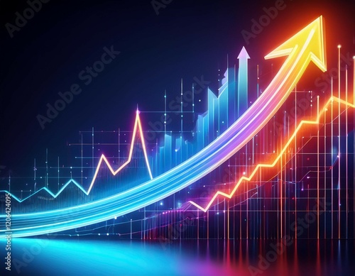 a vibrant neon arrow ascends symbolizing growth and progress against a backdrop of dynamic data visualizations the glowing path suggests a journey towards success