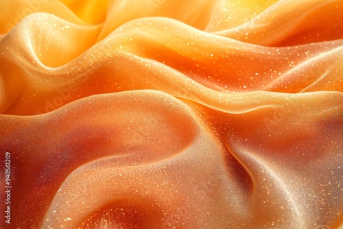 A vibrant orange and yellow fabric with a shimmering texture, ideal for Halloween themes, autumn celebrations, or elegant web designs, with copy space.