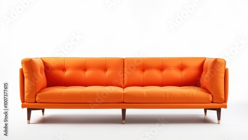 A vibrant orange sofa with tufted design, ideal for modern living spaces.