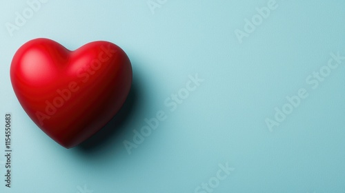 A vibrant red heart rests on a soft blue background, symbolizing love and affection.