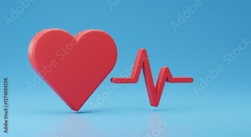 A vibrant red heart symbol with a steady heartbeat line against a calming blue background showcasing the rhythm of life.