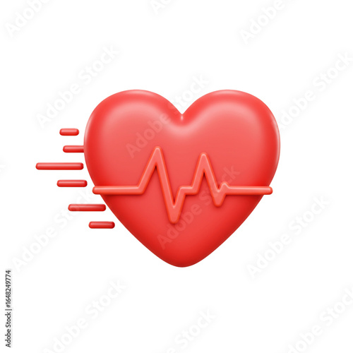 A vibrant red heart with a pulse line and motion streaks symbolizes health vitality and the rapid beat of life.