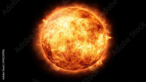 A vibrant representation of the sun showcasing its fiery surface and radiant energy. This image captures the essence of the sun, a vital source of light and life for Earth.