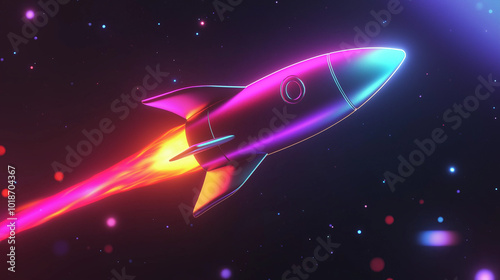 A vibrant retro rocket blasting through a colorful starry space background at night