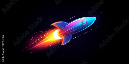 A Vibrant Rocket Launches Into Space, Leaving a Trail of Colorful Flames Under a Starry Night Sky in a Playful Digital Illustration