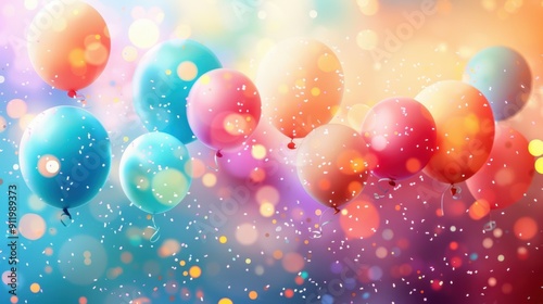 A vibrant scene of colorful balloons floating amidst confetti, creating a joyful and festive atmosphere perfect for celebrations.