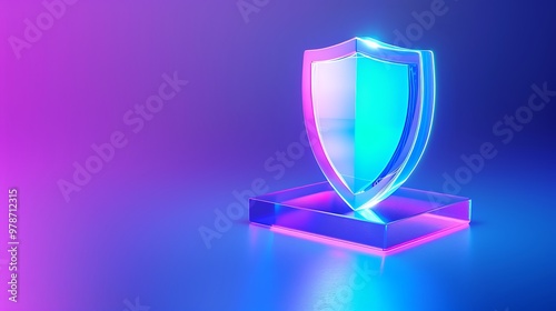A vibrant shield icon illuminated with neon colors, representing protection, security, and digital safety in a modern design.