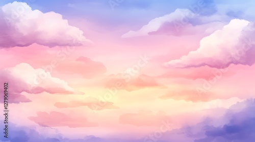 A vibrant soft watercolor-style cartoon depicting a sky filled with fluffy clouds.