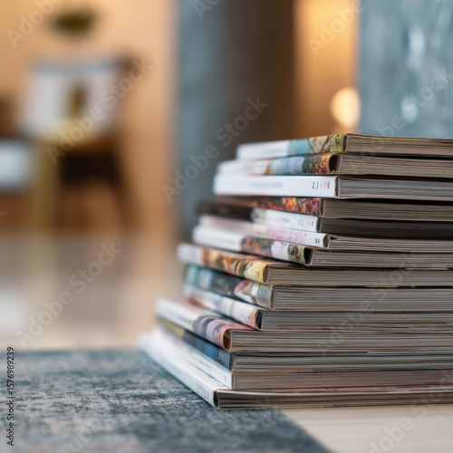 A vibrant stack of design magazines shows modern styles and trends.