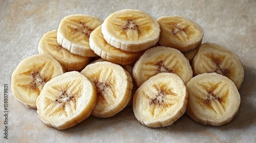 A vibrant still life showcasing a pile of freshly sliced bananas on neutral surface